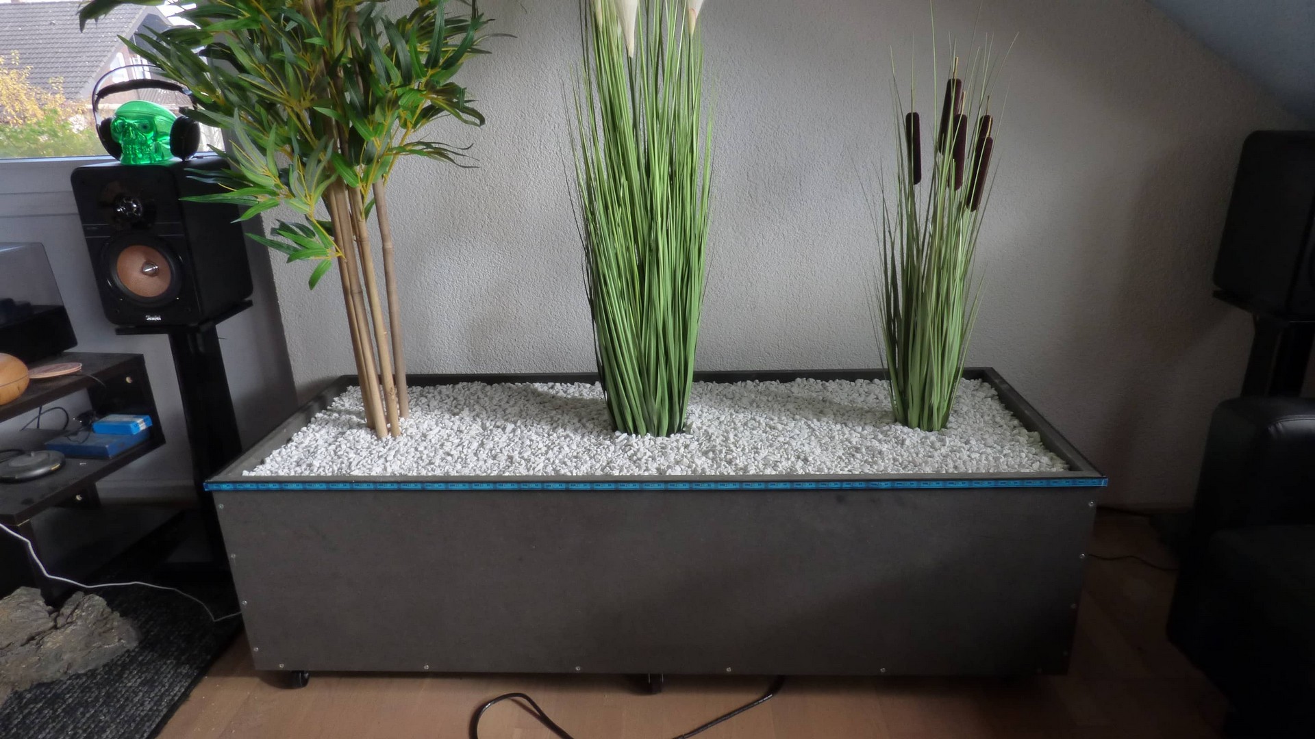 Die Pflanzentöpfe haben unterschiedliche Höhen, also musste man die Böden so montiert, das alles auf einer Höhe ist.