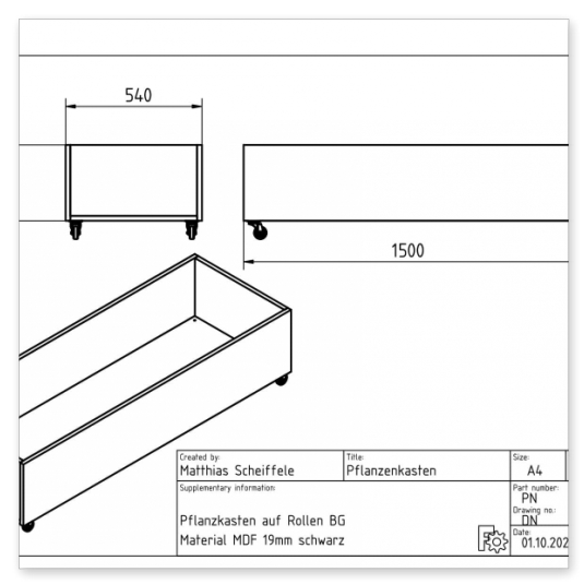 Material ( 19 mm MDF Platte schwarz durchgefärbt)